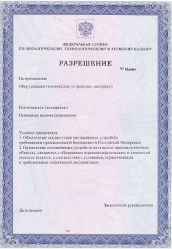 (Genehmigung des Rostekhnadzor der Russischen Föderation) wird von solchen Unternehmen verlangt, die bestimmte Arten von technischen Geräten an gefährlichen Produktionsstätten verwenden. Gefährliche Produktionsstätten in Übereinstimmung mit dem Gesetz „Über die Betriebssicherheit gefährlicher Produktionsanlagen“ vom 21.07.97 N 116 der RF sind Unternehmen oder deren Werkshallen, Gelände, Plätze und andere Produktionsstätten, die im Anhang 1 des Föderalgesetzes „Über die Betriebssicherheit gefährlicher Produktionsanlagen“ vom 21.07.97 N 116 der RF angegeben sind.Die Inbetriebnahmegenehmigung wird ausgestellt von Rostekhnadzor (Föderale Agentur für Umwelt-, Technologie- und Atomkraftaufsicht der Russischen Föderation) oder von den territorialen Verwaltungsstellen des RTN. Die Inbetriebnahmegenehmigung von im Ausland hergestellten Geräten wird ausschließlich von der Zentralstelle des RTN erteilt.