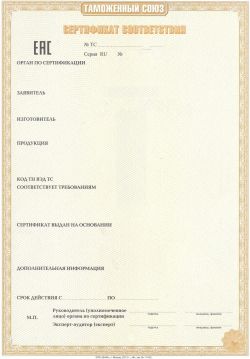 Der Formularvordruck wurde in Kraft gesetzt durch den Beschluss des Komitees der Zollunion № 896 vom 9. Dezember 2011. Es ist ein Dokument mit strenger Rechenschaftspflicht und mindestens vierfachem Echtheitsschutz (typographische Nummer, Mikrotext, holographisches Schutzelement, etc.). Analog dem russischen Zertifikat muss dieses Informationen über das Produkt, den Hersteller, Gesetze und Verordnungen, Anforderungserfüllung derer sowie Informationen über die Registrierung und Gültigkeitsdauer enthalten. Im Gegensatz zum russischen trägt das Zertifikat der Zollunion die Überschrift „Zollunion“, ein einheitliches Aktenzeichen sowie die Zolltarifnummer der Zollunion. Das Zertifikat darf ausschließlich mittels elektronischer Druckgeräte ausgefüllt werden. Die Vorderseite des Formulars muss auf Russisch ausgefüllt werden. Auf der Rückseite darf die offizielle Sprache des Zollunion-Mitgliedstaates, in dem das Zertifikat ausgestellt wurde, verwendet werden.Haben Sie Fragen? Zögern Sie nicht.